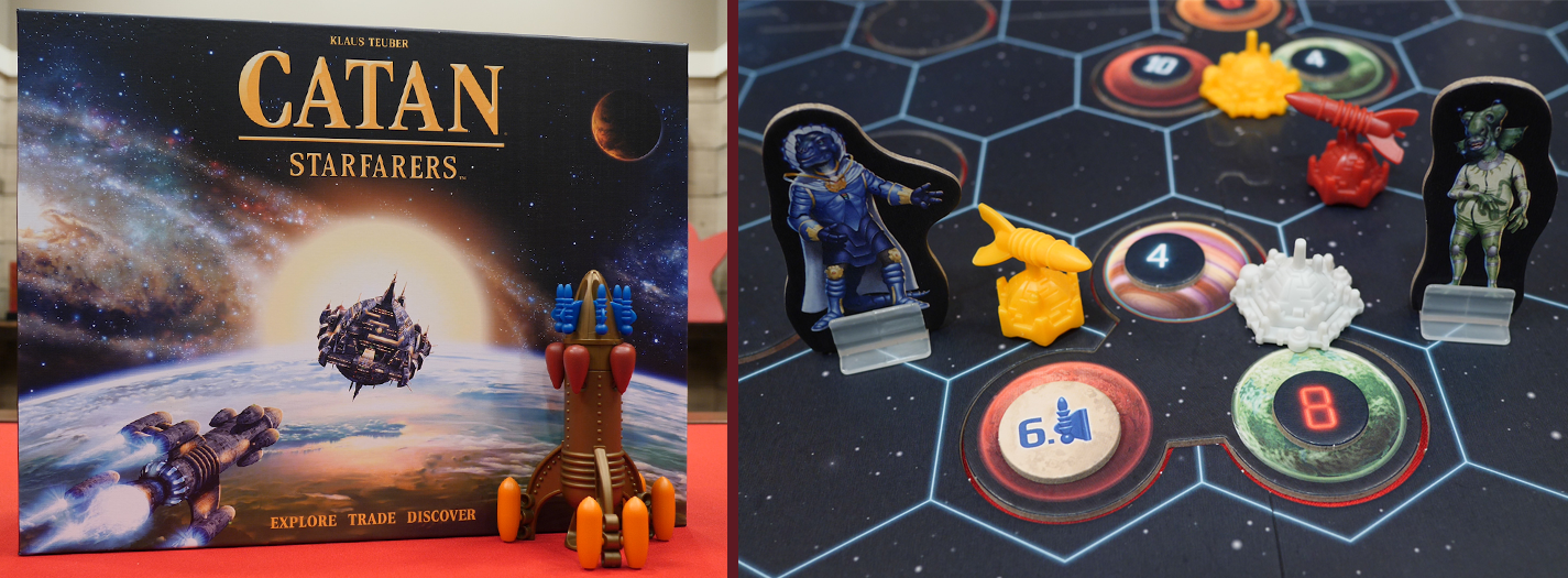 In this new edition of Catan Starfarers, 3-4 players will navigate their way through uncharted planets, in the search of new areas to colonize, resources to collect and lucrative outposts to trade with. Each player is competing for the title of Ambassador to the Galactic Council, a position never afforded to humans before, and only by leaving your home planet far behind, can you attempt to rise to this challenge.